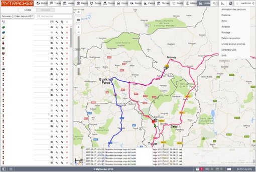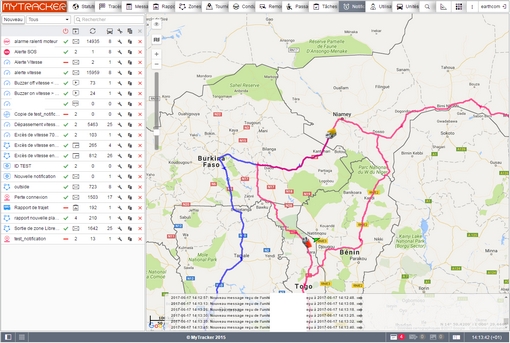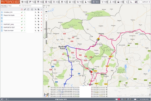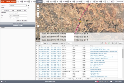Arrêts/parlking/capteurs/commandes/événements/pleins/vols/eco driving/esence/rues visitées/vidéo/photos/trajets/tournées/geofence/zones non visitées/utilisation des machines