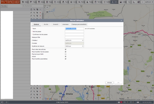 Création des utilisateurs du compte, nom, email, champs personnalisés, logs
